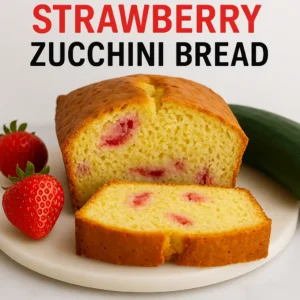 - Preheat your oven to 350°F (175°C).Grate the zucchini and press in a towel to remove excess moisture.Chop strawberries into small pieces.Mix flour, baking powder, baking soda, salt, and sweetener in one bowl.Mix oil, vanilla, and milk in another bowl.Combine wet and dry ingredients (don’t overmix).Fold in zucchini, strawberries, and optional nuts.Pour batter into greased loaf pan.Bake 45–50 minutes until toothpick comes out clean.Let cool in pan for 10 minutes, then cool completely on wire rack.