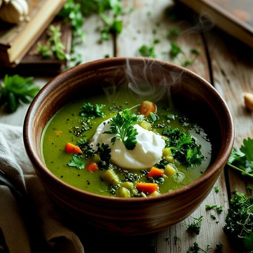 - Ladle into bowls and top with fresh herbs. Serve hot.
