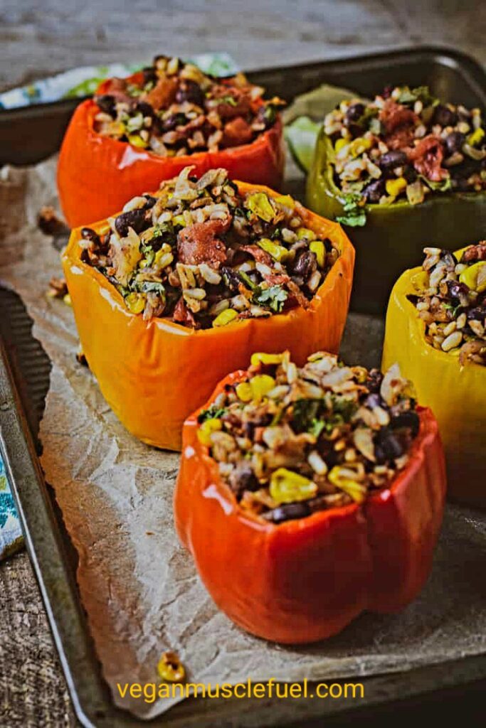 Nutrient-Packed: Each pepper is loaded with protein from quinoa and beans, fiber from veggies, and antioxidants from the bright red, orange, or yellow bell peppers.